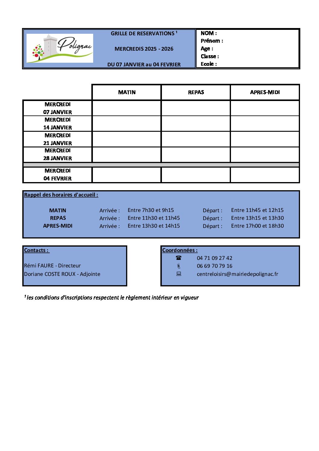 GRILLES DE RESERVATIONS 2025 – 2026